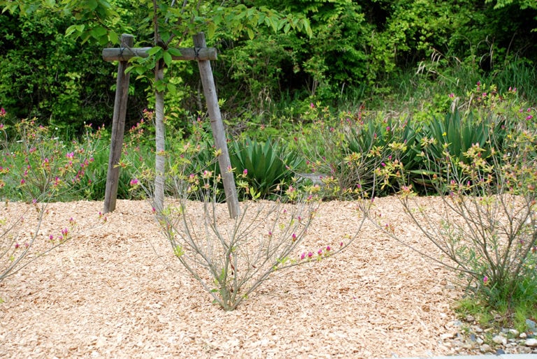 チップの表面は乾きやすく水分が少ないため、飛来してくる雑草種子が初芽しにくく、雑草の発芽が軽減されます。