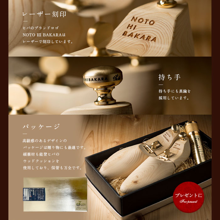 また、能登ヒバのオイル及び数種のオイルをブレンドした除菌・消臭・防カビ効果を高めた靴用スプレーをセットにしました。