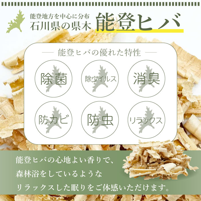 ほのかに香るヒバの香りは気分を落ち着かせ安眠を誘うリラックス効果があります。