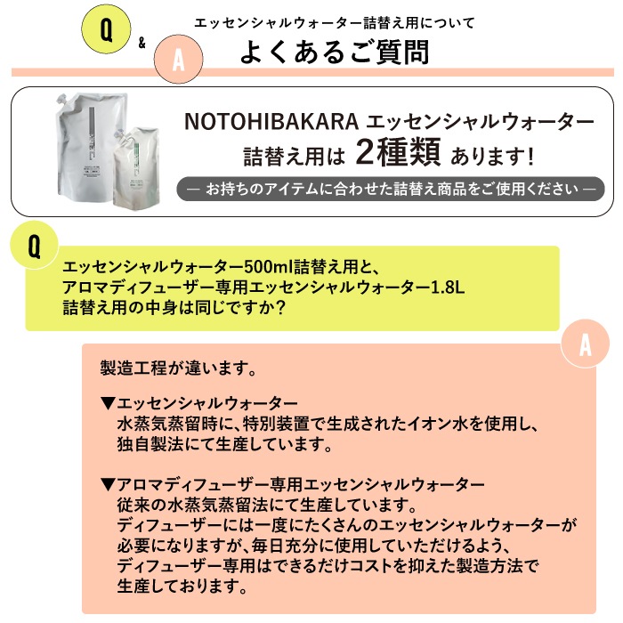 NOTOHIBAKARA アロマディフューザー専用エッセンシャルウオーター1.8L 詰替え用