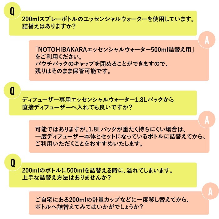 NOTOHIBAKARA アロマディフューザーとアロマディフューザー ミニ専用エッセンシャルウオーターの詰替え用です。