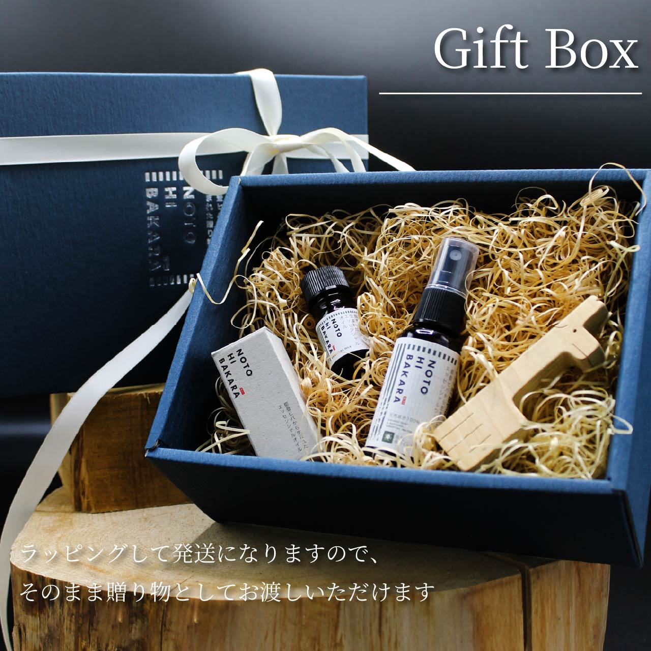 能登ヒバ精油5mlとウッドボールを組み合わせた、香りをしっかり楽しめるギフトセット。