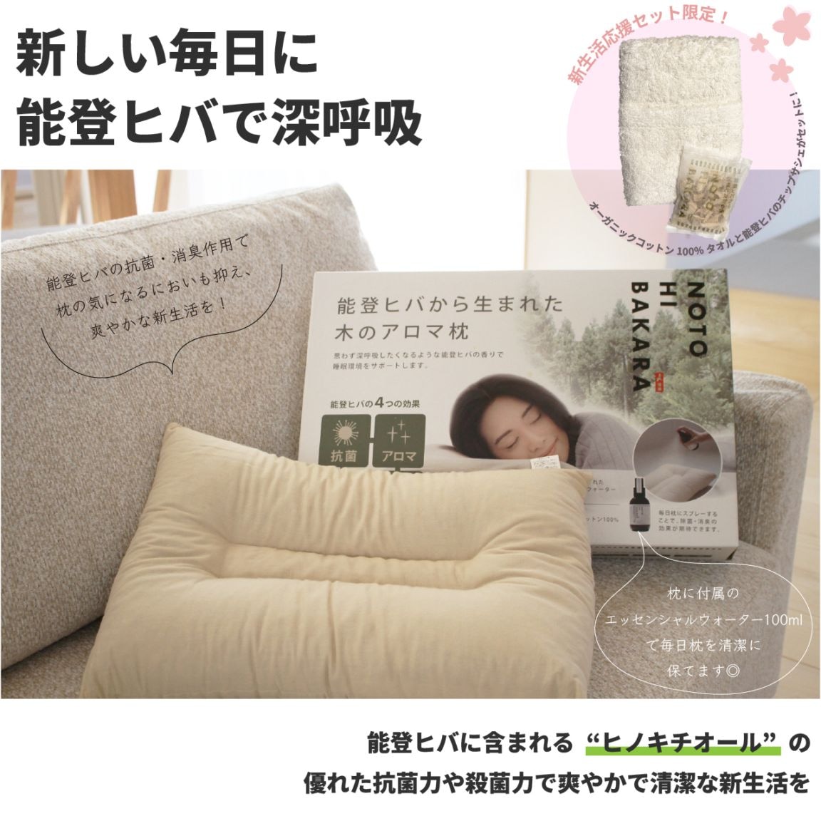 >>能登ヒバ枕&オーガニックコットン100%タオルのセット能登ヒバサシェのおまけつきのご購入はコチラ
